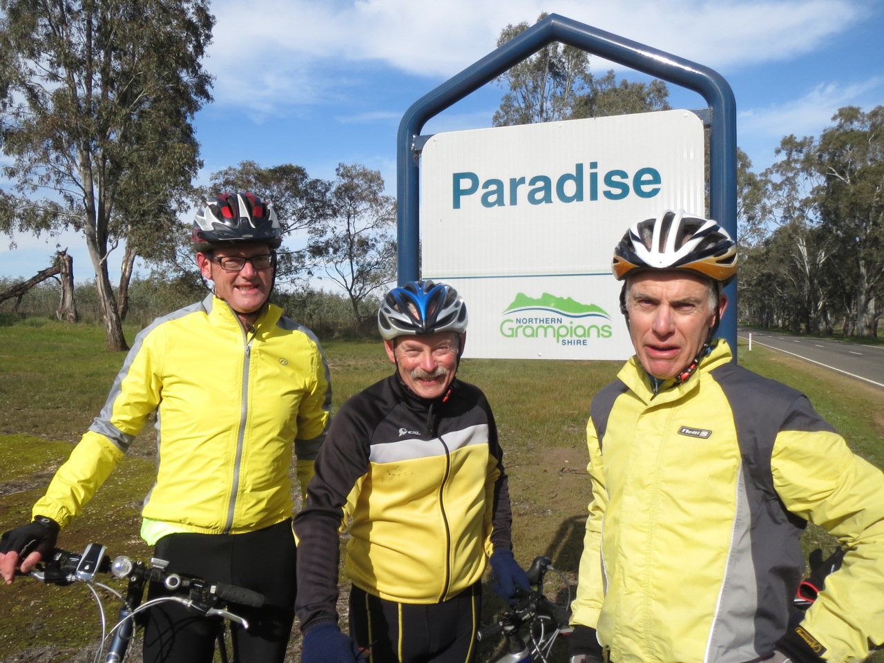 Below: ‘Cyclists in Paradise’ (NW Victoria south of St Arnaud ( L to R: John McDonald, Greg Malcher & Stephen Carey)