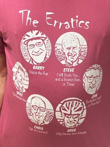 Again we were prevented from going interstate as originally planned. This 2021 route (550km cycling) completed with 5 (without Bruce) was therefore all within Western Victoria Victoria, with one day canoeing on the lower Glenelg River, and ‘non-transit days’ in both Portland & Warrnambool. Once the 2021 ride was completed, the 10 Erratic rides totalled 6,400km! The details of our rides are now proudly recorded on our group T shirts with mug shots of all six Erratics on the front, courtesy of Greg Malcher’s generosity.